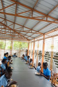 En plus des cours classiques, les enfants accueillis par FMS bénéficient aussi d’un repas chaud tous les jours de classe et de matériels scolaires sous forme de prêt et/ou dons.